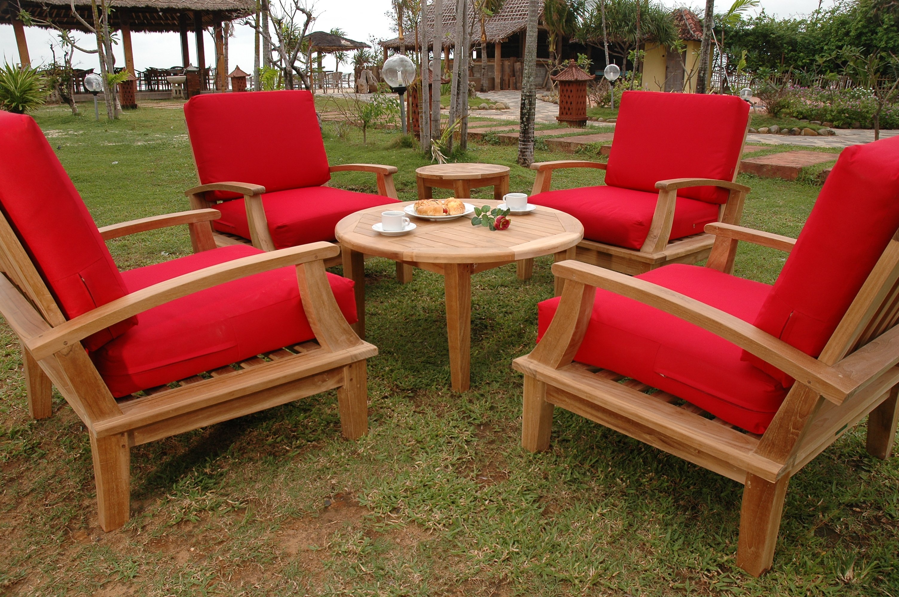 Perfect for intimate outdoor seating areas where you are looking to provide the maximum comfort. Skillfully crafted from the world's very best teak, joined together with the sturdy construction of mortise and tenon joinery. This set comes with 4 Brianna Deep Seating Armchairs, 1 5" Brianna Round Coffee Table and 1 20" Brianna Round Side Table. Sunbrella material cushion comes with it.
