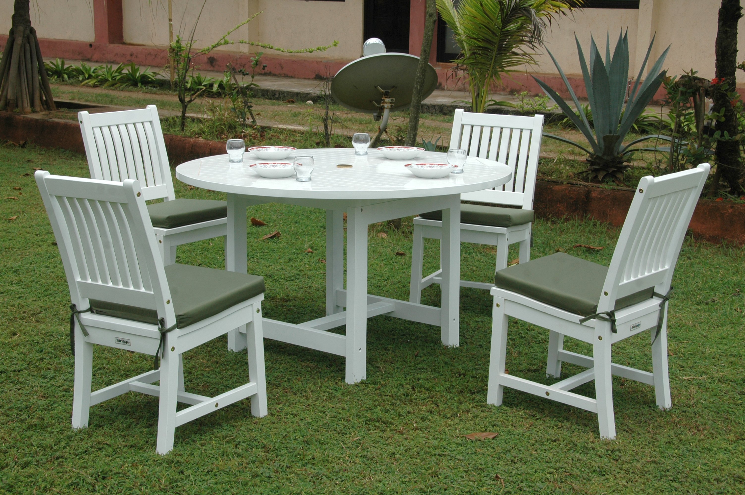 Our Regency Collection Set bring joy and comfort to your patio. The uniqueness of each item will make your garden or patio unforgettable to your guests. It comes with 1 52" Regency round dining table and 4 Regency dining chairs.